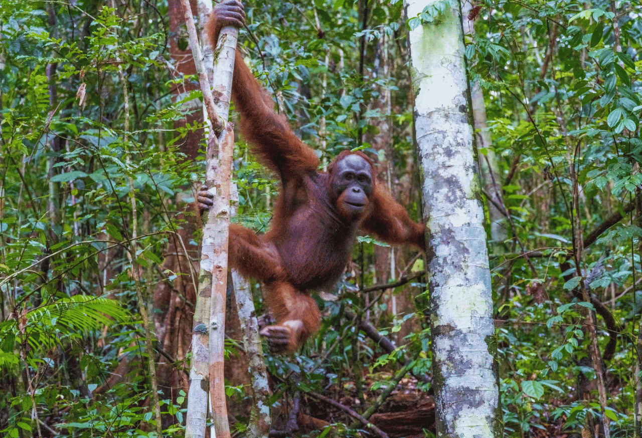 Program pelepasliaran orangutan hasil rehabilitasi ke habitat alaminya.